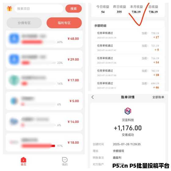 趣盈利APP第一大版块:主做正规高单价任务,每单几块几十到上百不等,多劳多得,只要不懒随便赚